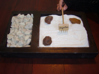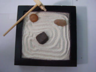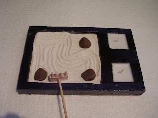 Jardines zen totalmente artesanales , de 15 x 15 cm , con arena de mármol , piedras , palillos e instrucciones de uso .